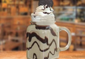 Delicioso café con helado de vainilla, crema chantilly y salsa de chocolate.