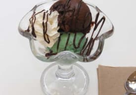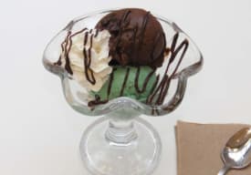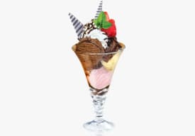 Copa de tres sabores de helados a elección con brownie,salsa de chocolate,crema chantilly.