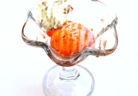 Copa de tres sabores de helados a elección con salsa de frutos rojos,frutilla,arandanos,crema chantilly.