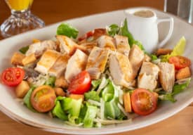 Mix de hojas de lechuga, rúcula, tomates cocktail, bastones de crutones a la albahaca y crocante de parmesano. Todo aderezado con salsa césar tradicional.