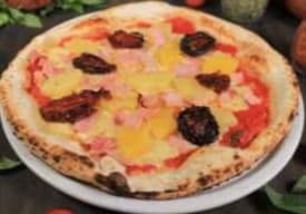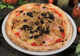 Queso mozzarella, salsa Pomodoro, jamón, champiñones y corazones de alcachofa