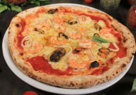 Pepperoni, aceitunas, salsa Pomodoro, champiñones, camarones y mozzarella.