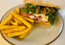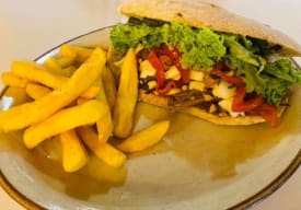 Plateada, Acompañado De Queso Cabra, Lechuga, Albahaca, Peperonata Y Papas