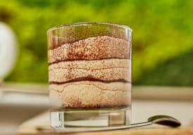 Dulce crema a base de queso mascarpone y crema batida, acompa- ñada de frutillas frescas y un toque de cacao.