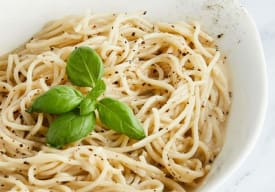 Deliciosos Spaghetti envueltos en una mezcla de aceite de oliva, queso pecorino y pimienta negra